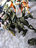 左はいわゆる「実機系」の皆様(思いっきり手ブレしてしまった……)。やっぱり量産機臭さの出るミリタリーカラーはいいですねぇ……。前回も展示に出ていたイスラエル機なども実に良い感じ。中央上オリーブグリーンイーグルの肩についているのはオリジナル兵装で、ミサイルポッドではなく地雷撒布装置だとか。これまた渋い:)